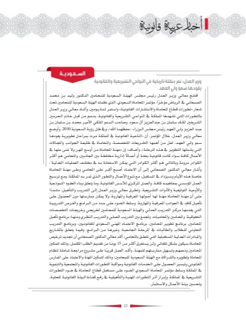 %u0648%u0632%u064a%u0631 %u0627%u0644%u0639%u062f%u0644: %u0646%u0645%u0631 %u0628%u0646%u0642%u0644%u0629 %u062a%u0627%u0631%u064a%u062e%u064a%u0629 %u0641%u064a %u0627%u0644%u0646%u0648%u0627%u062d%u064a %u0627%u0644%u062a%u0634%u0631%u064a%u0639%u064a%u0629 %u0648%u0627%u0644%u0642%u0627%u0646%u0648%u0646%u064a%u0629 %u064a%u0642%u0648%u062f%u0647%u0627 %u0633%u0645%u0648 %u0648%u0644%u064a %u0627%u0644%u0639%u0647%u062f%u0627%u0641%u062a%u062a%u0640%u062d %u0645%u0639%u0627%u0644%u0640%u064a %u0648%u0632%u064a%u0640%u0631 %u0627%u0644%u0639%u0640%u062f%u0644 %u0631%u0626%u064a%u0640%u0633 %u0645%u062c%u0644%u0640%u0633 %u0627%u0644%u0647%u064a%u0626%u0640%u0629 %u0627%u0644%u0633%u0640%u0639%u0648%u062f%u064a%u0629 %u0644%u0644%u0645%u062d%u0640%u0627%u0645%u0646%u064a %u0627%u0644%u062f%u0643%u062a%u0640%u0648%u0631 %u0648%u0644%u064a%u0640%u062f %u0628%u0640%u0646 %u0645%u062d%u0645%u0640%u062f %u0627%u0644%u0635%u0645%u0639%u0627%u0646%u0640%u064a %u064a%u0641 %u0627%u0644%u0631%u064a%u0640%u0627%u0636 %u0645%u0624%u062e%u0640 %u064b%u064b%u0631%u0627%u060c %u0645%u0624%u062a%u0645%u0640%u0631 %u0627%u0645%u0644%u062d%u0627%u0645%u0640%u0627%u0629 %u0627%u0644%u0633%u0640%u0639%u0648%u062f%u064a%u060c %u0627%u0644%u0630%u064a %u0646%u0638%u0645%u062a%u0647 %u0627%u0644%u0647%u064a%u0626%u0629 %u0627%u0644%u0633%u0640%u0639%u0648%u062f%u064a%u0629 %u0644%u0644%u0645%u062d%u0627%u0645%u0646%u064a %u062a%u062d%u062a %u0634%u0640%u0639%u0627%u0631 %u00bb%u062a%u0637%u0640%u0648%u0631%u0627%u062a %u0642%u0637%u0640%u0627%u0639 %u0627%u0645%u0644%u062d%u0627%u0645%u0640%u0627%u0629 %u0648%u0627%u0627%u0644%u0633%u062a%u0634%u0640%u0627%u0631%u0627%u062a %u0627%u0644%u0642%u0627%u0646%u0648%u0646%u064a%u0640%u0629%u00ab %u0648%u0627%u0633%u0640%u062a%u0645%u0631 %u0645%u0644%u0645%u062f%u0629 %u064a%u0640%u0648%u0645%u0646%u064a. %u0648%u0623%u0634%u0640%u0627%u062f %u0645%u0639%u0627%u0644%u0640%u064a %u0648%u0632%u064a%u0640%u0631 %u0627%u0644%u0639%u0640%u062f%u0644 %u0628%u0627%u0644%u062a%u0637%u0640%u0648%u0631%u0627%u062a %u0627%u0644%u062a%u0640%u064a %u062a%u0634%u0640%u0647%u062f%u0647%u0627 %u0627%u0645%u0644%u0645%u0644%u0643%u0640%u0629 %u064a%u0641 %u0627%u0644%u0646%u0648%u0627%u062d%u0640%u064a %u0627%u0644%u062a%u0634%u0640%u0631%u064a%u0639%u064a%u0629 %u0648%u0627%u0644%u0642%u0627%u0646%u0648%u0646%u064a%u0640%u0629%u060c %u0628%u062f%u0639%u0640%u0645 %u0645%u0640%u0646 %u0642%u0628%u0640%u0644 %u062e%u0640%u0627%u062f%u0645 %u0627%u0644%u062d%u0640%u0631%u0645%u0646%u064a %u0627%u0644%u0634%u0640%u0631%u064a%u0641%u0646%u064a %u0627%u0645%u0644%u0644%u0640%u0643 %u0633%u0640%u0644%u0645%u0627%u0646 %u0628%u0640%u0646 %u0639%u0628%u062f%u0627%u0644%u0639%u0632%u064a%u0640%u0632 %u0622%u0644 %u0633%u0640%u0639%u0648%u062f%u060c %u0648%u0635%u0627%u062d%u0640%u0628 %u0627%u0644%u0633%u0640%u0645%u0648 %u0627%u0645%u0644%u0644%u0643%u0640%u064a %u0627%u0623%u0644%u0645%u064a%u0640%u0631 %u0645%u062d%u0645%u0640%u062f %u0628%u0640%u0646 %u0633%u0640%u0644%u0645%u0627%u0646 %u0628%u0640%u0646 %u0639%u0628%u0640%u062f %u0627%u0644%u0639%u0632%u064a%u0640%u0632 %u0648%u0644%u0640%u064a %u0627%u0644%u0639%u0647%u0640%u062f %u0631%u0626%u064a%u0640%u0633 %u0645%u062c%u0644%u0640%u0633 %u0627%u0644%u0640%u0648%u0632%u0631%u0627%u0621 -%u062d%u0641%u0638%u0647%u0645%u0640%u0627 %u0627%u0647%u0644%u0644-%u060c %u0648%u064a%u0641 %u0638%u0640%u0644 %u0631%u0624%u064a%u0640%u0629 %u0627%u0644%u0633%u0640%u0639%u0648%u062f%u064a%u0629 2030 .%u0648%u0623%u0648%u0636%u0640%u062d %u0645%u0639%u0627%u0644%u0640%u064a %u0648%u0632%u064a%u0640%u0631 %u0627%u0644%u0639%u0640%u062f%u0644%u060c %u062e%u0627%u0644%u0644 %u0627%u0645%u0644%u0624%u062a%u0645%u0640%u0631%u060c %u0623%u0646 %u00bb%u0627%u0644%u0646%u0627%u062d%u064a%u0640%u0629 %u0627%u0644%u0642%u0627%u0646%u0648%u0646%u064a%u0640%u0629 %u064a%u0641 %u0627%u0645%u0644%u0645%u0644%u0643%u0640%u0629 %u0645%u0640%u0631%u062a %u0628%u0645%u0631%u0627%u062d%u0640%u0644 %u062a%u0637%u0648%u064a%u0631%u064a%u0640%u0629 %u064a%u0642%u0648%u062f%u0647%u0640%u0627 %u0633%u0640%u0645%u0648 %u0648%u0644%u0640%u064a %u0627%u0644%u0639%u0647%u0640%u062f%u060c %u0644%u0639%u0640%u0644 %u0645%u0640%u0646 %u0623%u0647%u0645%u0647%u0640%u0627 %u0627%u0644%u062a%u0634%u0640%u0631%u064a%u0639%u0627%u062a %u0627%u0645%u0644%u062a%u062e%u0635%u0635%u0640%u0629%u060c %u0648%u0627%u0645%u0644%u062d%u0627%u0645%u0640%u0627%u0629 %u064a%u0641 %u0637%u0644%u064a%u0639%u0640%u0629 %u0627%u0644%u062c%u0648%u0627%u0646%u0640%u0628 %u0648%u0627%u0645%u0644%u062c%u0640%u0627%u0627%u0644%u062a %u0627%u0644%u062a%u0640%u064a %u064a%u0634%u0640%u0645%u0644%u0647%u0627 %u0627%u0644%u062a%u0637%u0648%u064a%u0640%u0631 %u064a%u0641 %u0647%u0640%u0630%u0647 %u0627%u0645%u0644%u0631%u062d%u0644%u0640%u0629%u00ab. %u0648%u0623%u0636%u0640%u0627%u0641: %u0625%u0646 %u00bb%u0645%u0647%u0646%u0640%u0629 %u0627%u0645%u0644%u062d%u0627%u0645%u0640%u0627%u0629 %u0645%u0640%u0646 %u0623%u0648%u0633%u0640%u0639 %u0627%u0645%u0644%u0647%u0640%u0646 %u0648%u0627%u0644 %u063a%u0646%u0640%u0649 %u0639%u0646%u0647%u0640%u0627 %u064a%u0641 %u0627%u0623%u0644%u0639%u0645%u0640%u0627%u0644 %u0643%u0627%u0641%u0640%u0629 %u0633%u0640%u0648%u0627%u0621 %u0643%u0627%u0646%u0640%u062a %u0642%u0627%u0646%u0648%u0646%u064a%u0640%u0629 %u0628%u062d%u062a%u0640%u0629 %u0623%u0648 %u0623%u0639%u0645%u0640%u0627%u0627%u064b%u0644%u0627 %u0625%u062f%u0627%u0631%u064a%u0640%u0629 %u0645%u062e%u062a%u0644%u0637%u0640%u0629 %u0628%u0646%u064a %u0627%u0644%u062c%u0627%u0646%u0640%u0628%u0646%u064a%u060c %u0648%u0627%u0645%u0644%u062d%u0627%u0645%u0640%u064a %u0647%u0640%u0648 %u0623%u0643%u062b%u0640%u0631 %u0627%u0644%u0643%u0640%u0648%u0627%u062f%u0631 %u0645%u0631%u0648%u0646%u0640%u0629 %u0648%u0628%u0627%u0644%u062a%u0627%u0644%u0640%u064a %u0647%u0640%u0648 %u0623%u0643%u062b%u0640%u0631 %u0627%u0644%u0643%u0640%u0648%u0627%u062f%u0631 %u0627%u0644%u062a%u0640%u064a %u064a%u0645%u0643%u0640%u