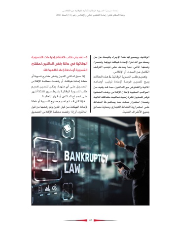 40%u0627%u0644%u0648%u0642%u0627%u0626%u064a%u0629%u060c %u0648%u064a%u0633%u0640%u0645%u062d %u0644%u0647%u0627 %u0647%u0630%u0627 %u0627%u0625%u0644%u062c%u0631%u0627%u0621 %u0628%u0627%u0644%u0628%u062d%u062b %u0639%u0646 %u062d%u0644 %u0648%u0633%u0640%u0637 %u0645%u0640%u0639 %u0627%u0644%u062f%u0627%u0626%u0640%u0646%u0646%u064a %u0625%u0644%u0639%u0640%u0627%u062f%u0629 %u0647%u064a%u0643%u0644%u0640%u0629 %u062f%u064a%u0648%u0646%u0647%u0640%u0627 %u0648%u062a%u062d%u0640%u0633%u0646%u064a %u0648%u0636%u0639%u0647%u0640%u0627 %u0627%u0645%u0644%u0627%u0644%u0640%u064a%u060c %u0645%u0645%u0640%u0627 %u064a%u0633%u0640%u0627%u0639%u062f %u0639%u0644%u0640%u0649 %u062a%u062c%u0646%u0640%u0628 %u0627%u0644%u062a%u0648%u0642%u0640%u0641 %u0627%u0644%u0643%u0627%u0640%u0645%u0644 %u0640%u0639%u0646 %u0627%u0644%u0640%u0633%u062f%u0627%u062f %u0623%u0648 %u0627%u0625%u0644%u0641%u0627%u0644%u0633.%u0648%u062a%u0642%u062f%u064a%u0640%u0645 %u0637%u0644%u0640%u0628 %u0627%u0644%u062a%u0633%u0640%u0648%u064a%u0629 %u0627%u0644%u0648%u0642%u0627%u0626%u064a%u0629 %u064a%u0641 %u0647%u0630%u0647 %u0627%u0644%u062d%u0627%u0627%u0644%u062a %u064a%u062a%u064a%u0640%u062d %u0644%u0644%u0645%u062f%u064a%u0640%u0646 %u0641%u0631%u0635%u0640%u0629 %u0625%u0644%u0639%u0640%u0627%u062f%u0629 %u062a%u0631%u062a%u064a%u0640%u0628 %u0623%u0648%u0636%u0627%u0639%u0640%u0647 %u0627%u0645%u0644%u0627%u0644%u064a%u0640%u0629 %u0648%u0627%u0644%u062a%u0641%u0640%u0627%u0648%u0636 %u0645%u0640%u0639 %u0627%u0644%u062f%u0627%u0626%u0640%u0646%u0646%u064a%u060c %u0645%u0645%u0640%u0627 %u0642%u0640%u062f %u064a%u0642%u064a%u0640%u0647 %u0645%u0640%u0646 %u0627%u0644%u0639%u0648%u0627%u0642%u0640%u0628 %u0627%u0644%u0633%u0640%u0644%u0628%u064a%u0629 %u0625%u0644%u0639%u0627%u0644%u0646 %u0627%u0625%u0644%u0641%u0627%u0644%u0633%u060c %u0648%u0647%u0640%u0630%u0647 %u0627%u0644%u062e%u0637%u0640%u0648%u0629 %u062a%u0648%u0641%u0640%u0631 %u0644%u0644%u0645%u062f%u064a%u0640%u0646 %u0641%u062a%u0640%u0631%u0629 %u0632%u0645%u0646%u064a%u0640%u0629 %u0645%u0644%u0639%u0627%u0644%u062c%u0640%u0629 %u0645%u0634%u0640%u0627%u0643%u0644%u0647 %u0627%u0645%u0644%u0627%u0644%u064a%u0640%u0629 %u0648%u0636%u0645%u0640%u0627%u0646 %u0627%u0633%u0640%u062a%u0645%u0631%u0627%u0631 %u0639%u0645%u0644%u0640%u0647%u060c %u0645%u0645%u0640%u0627 %u064a%u0633%u0640%u0627%u0647%u0645 %u064a%u0641 %u0627%u0644%u062d%u0641%u0640%u0627%u0638 %u0639%u0644%u0640%u0649 %u0627%u0633%u0640%u062a%u0645%u0631%u0627%u0631%u064a%u0629 %u0627%u0644%u0646%u0634%u0640%u0627%u0637 %u0627%u0644%u062a%u062c%u0640%u0627%u0631%u064a %u0648%u062d%u0645%u0627%u064a%u0629 %u0645%u0635%u0627%u0644%u062d %u062c%u0645%u0640%u064a%u0639 %u0627%u0623%u0644%u0640%u0637%u0631%u0627%u0641 %u0627%u0645%u0644%u0639%u0646%u0640%u064a%u0629.2 -%u062a%u0642%u062f%u064a%u0645 %u0637%u0644%u0628 %u0627%u0644%u0641%u062a%u062a%u0627%u062d %u0625%u062c%u0631%u0627%u0621%u0627%u062a %u0627%u0644%u062a%u0633%u0648%u064a%u0629 %u0627%u0644%u0648%u0642%u0627%u0626%u064a%u0629 %u0641%u064a %u062d%u0627%u0644%u0629 %u0631%u0641%u0636 %u0627%u0644%u062f%u0627%u0626%u0646%u064a%u0646 %u0644%u0645%u0642%u062a%u0631%u062d %u0627%u0644%u062a%u0633%u0648%u064a%u0629 %u0623%u0648 %u062e%u0637%u0629 %u0625%u0639%u0627%u062f%u0629 %u0627%u0644%u0647%u064a%u0643%u0644%u0629:%u0625%u0630%u0627 %u0633%u0640%u0628%u0642 %u0644%u062f%u0627%u0626%u0646%u0640%u064a %u0627%u0645%u0644%u062f%u064a%u0640%u0646 %u0631%u0641%u0640%u0636 %u0645%u0642%u062a%u0640%u0631%u062d %u062a%u0633%u0640%u0648%u064a%u0629 %u0623%u0648 %u062e%u0637%u0640%u0629 %u0625%u0639%u0640%u0627%u062f%u0629 %u0647%u064a%u0643%u0644%u0640%u0629%u060c %u0623%u0648 %u0631%u0641%u0636%u0640%u062a %u0645%u062d%u0643%u0645%u0640%u0629 %u0627%u0625%u0644%u0641%u0627%u0644%u0633 %u0627%u0644%u062a%u0635%u062f%u064a%u0640%u0642 %u0639%u0644%u0640%u0649 %u0623%u064a %u0645%u0646%u0647%u0645%u0640%u0627%u060c %u064a%u0645%u0643%u0640%u0646 %u0644%u0644%u0645%u062f%u064a%u0640%u0646 %u062a%u0642%u062f%u064a%u0640%u0645 %u0637%u0644%u0640%u0628 %u0644%u0644%u062a%u0633%u0640%u0648%u064a%u0629 %u0627%u0644%u0648%u0642%u0627%u0626%u064a%u0640%u0629 %u0628%u0634%u0640%u0631%u0637 %u0645%u0640%u0631%u0648%u0631 %u062b%u0627%u0644%u062b%u0640%u0629 %u0623%u0634%u0640%u0647%u0631 %u0639%u0640%u0644%u0649 %u0627%u062c%u062a%u0640%u0645%u0627%u0639 %u0627%u0644%u062f%u0627%u0640%u0626%u0646%u0646%u064a %u0623%u0648 %u0640%u0642%u0631%u0627%u0631 %u0627%u0645%u0644%u062d%u0643%u0640%u0645%u0629.%u0641%u0640%u0625%u0630%u0627 %u0643%u0627%u0646 %u0642%u0640%u062f %u062a%u0640%u0645 %u062a%u0642%u062f%u064a%u0640%u0645 %u0645%u0642%u062a%u0631%u062d %u0644%u0644%u062a%u0633%u0640%u0648%u064a%u0629 %u0623%u0648 %u062e%u0637%u0629 %u0625%u0644%u0639%u0640%u0627%u062f%u0629 %u0627%u0644%u0647%u064a%u0643%u0644%u0640%u0629 %u0645%u0640%u0646 %u0642%u0628%u0644 %u0627%u0645%u0644%u062f%u064a%u0646 %u0648%u062a%u0645 %u0631%u0641%u0636%u0647%u0627 %u0645%u0646 %u0642%u0628%u0644 %u0627%u0644%u062f%u0627%u0626%u0646%u0646%u064a%u060c %u0623%u0648 %u0625%u0630%u0627 %u0631%u0641%u0636%u062a %u0645%u062d%u0643%u0645%u0629 %u0627%u0625%u0644%u0641%u0627%u0644%u0633 %u0627%u0644%u062a%u0635%u062f%u064a%u0642 %u0645%u062c%u0644%u0629 %u0627%u0645%u0644%u064a%u0632%u0627%u0646/ %u0627%u0644%u062a%u0633%u0648%u064a%u0629 %u0627%u0644%u0648%u0642%u0627%u0626%u064a%u0629 %u0643%u0622%u0644%u064a%u0629 %u0644%u0644%u0648%u0642%u0627%u064a%u0629 %u0645%u0646 %u0627%u0625%u0644%u0641%u0627%u0644%u0633%u0648%u0641 %u064b%u064b%u0642%u0627 %u0623%u0644%u062d%u0643%u0627%u0645 %u0642%u0627%u0646%u0648%u0646 %u0625%u0639%u0627%u062f%u0629 %u0627%u0644%u062a%u0646%u0638%u064a%u0645 %u0627%u0645%u0644%u0627%u0644%u064a %u0648%u0627%u0625%u0644%u0641%u0627%u0644%u0633 %u0631%u0642%u0645 )51 )%u0644%u0633%u0646%u0629 2023