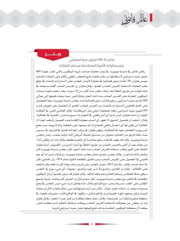 %u0635%u0627%u062d%u0628 %u0627%u0644%u0640 600 %u0645%u0644%u064a%u0648%u0646 %u062c%u0646%u064a%u0647 %u0627%u0633%u062a%u0631%u0644%u064a%u0646%u064a %u064a%u062e%u0633%u0631 %u0645%u062d%u0627%u0648%u0644%u062a%u0647 %u0627%u0623%u0644%u062e%u064a%u0631%u0629 %u0627%u0644%u0633%u062a%u0639%u0627%u062f%u062a%u0647%u0627 %u0645%u0646 %u0645%u0643%u0628 %u0627%u0644%u0646%u0641%u0627%u064a%u0627%u062a%u0631%u0641%u0640%u0636 %u0642%u0640%u0627%u0636 %u064a%u0641 %u0645%u062f%u064a%u0646%u0640%u0629 %u0646%u064a%u0648%u0628%u0640%u0648%u0631%u062a %u064a%u0641 %u0648%u064a%u0644%u0640%u0632 %u0645%u062d%u0627%u0648%u0644%u0640%u0629 %u0635%u0627%u062d%u0640%u0628 %u062b%u0640%u0631%u0648%u0629 %u0627%u0644%u0628%u064a%u062a%u0643%u0648%u064a%u0640%u0646 %u0648%u0627%u0644%u062a%u0640%u064a %u062a%u0642%u0640%u062f%u0631 %u0628%u0642%u064a%u0645%u0640%u0629 600%u0645%u0644%u064a%u0640%u0648%u0646 %u062c%u0646%u064a%u0640%u0647 %u0627%u0633%u0640%u062a%u0631%u0644%u064a%u0646%u064a %u0627%u0644%u0633%u0640%u062a%u0639%u0627%u062f%u062a%u0647%u0627 %u0645%u0640%u0646 %u0645%u0643%u0640%u0628 %u0646%u0641%u0627%u064a%u0627%u062a %u062a%u0627%u0628%u0640%u0639 %u0644%u0644%u0645%u062c%u0644%u0633 %u0627%u0645%u0644%u062d%u0644%u064a. %u0648%u0623%u0642%u0627%u0645 %u062e%u0628%u064a%u0631 %u0627%u0644%u0639%u0645%u0627%u0644%u062a %u0627%u0645%u0644%u0634%u0640%u0641%u0631%u0629 %u062c%u064a%u0645%u0640%u0633 %u0647%u0627%u0648%u0644%u0640%u0632 )39 %u0639%u0627%u0645%u0640%u0627( %u062f%u0639%u0640%u0648%u0649 %u0642%u0636%u0627%u0626%u064a%u0640%u0629 %u064a%u0641 %u0645%u062d%u0627%u0648%u0644%u0640%u0629 %u0625%u0644%u062c%u0628%u0640%u0627%u0631 %u0627%u0645%u0644%u062c%u0644%u0640%u0633 %u0639%u0644%u0640%u0649 %u0627%u0644%u0633%u0640%u0645%u0627%u062d %u0644%u0640%u0647 %u0628%u0627%u0644%u0628%u062d%u0640%u062b %u064a%u0641 %u0645%u0648%u0642%u0639 %u0645%u0643%u0640%u0628 %u0627%u0644%u0646%u0641%u0627%u064a%u0640%u0627%u062a %u0627%u0644%u0633%u0640%u062a%u0639%u0627%u062f%u0629 %u0627%u0644%u0642%u0640%u0631%u0635 %u0627%u0644%u0635%u0644%u0640%u0628 %u0627%u0645%u0644%u0641%u0642%u0640%u0648%u062f. %u0648%u0642%u0640%u0627%u0644 %u0647%u0627%u0648%u0644%u0640%u0632 %u0625%u0646 %u0627%u0644%u0642%u0640%u0631%u0635 %u0627%u0644%u0635%u0644%u0640%u0628 %u0623%u0644%u0642%u062a%u0640%u0647 %u0635%u062f%u064a%u0642%u062a%u0640%u0647 %u064a%u0641 %u0630%u0644%u0640%u0643 %u0627%u0644%u0648%u0642%u0640%u062a %u0639%u0640%u0646 %u0637%u0631%u064a%u0640%u0642 %u0627%u0644%u062e%u0637%u0640%u0623 %u0628%u0639%u0640%u062f %u0625%u062e%u0627%u0644%u0621 %u0645%u0643%u062a%u0640%u0628 %u0645%u0646%u0640%u0630 %u0623%u0643%u062b%u0640%u0631 %u0645%u0640%u0646 10 %u0633%u0640%u0646%u0648%u0627%u062a. %u0648%u0642%u0640%u062f %u0627%u0631%u062a%u0641%u0639%u0640%u062a %u0642%u064a%u0645%u0640%u0629 %u0639%u0640%u0645%u0627%u0644%u062a %u0627%u0644%u0628%u064a%u062a%u0643%u0648%u064a%u0640%u0646 %u0627%u0645%u0644%u062e%u0632%u0646%u0640%u0629 %u0639%u0644%u0640%u0649 %u0627%u0644%u0642%u0640%u0631%u0635 %u0627%u0644%u0635%u0644%u0640%u0628 %u0645%u0646%u0640%u0630 %u0630%u0644%u0640%u0643 %u0627%u0644%u0640%u062d%u0646%u064a %u0628%u0634%u0640%u0643%u0644 %u0643%u0628%u064a%u0640%u0631%u060c %u062d%u064a%u0640%u062b %u0648%u0635%u0644%u062a %u0642%u064a%u0645%u062a%u0647%u0627 %u0625%u0644%u0640%u0649 %u062d%u0648%u0627%u0644%u064a 608 %u0645%u0627%u0644%u064a%u0646%u064a %u062c%u0646%u064a%u0640%u0647 %u0627%u0633%u0640%u062a%u0631%u0644%u064a%u0646%u064a. %u0648%u0631%u0641%u0640%u0639 %u0647%u0627%u0648%u0644%u0640%u0632 %u062f%u0639%u0640%u0648%u0649 %u0642%u0636%u0627%u0626%u064a%u0640%u0629 %u0636%u0640%u062f %u0645%u062c%u0644%u0640%u0633 %u0645%u062f%u064a%u0646%u0640%u0629 %u0646%u064a%u0648%u0628%u0640%u0648%u0631%u062a %u0633%u0640%u0639%u064b%u064b%u064a%u0627 %u0644%u0644%u062d%u0635%u0640%u0648%u0644 %u0639%u0644%u0640%u0649 %u0627%u0644%u062d%u0640%u0642 %u0627%u0644%u0642%u0627%u0646%u0648%u0646%u0640%u064a %u0644%u0644%u0633%u0640%u0645%u0627%u062d %u0644%u0640%u0647 %u0628%u0627%u0644%u0628%u062d%u0640%u062b %u0639%u0640%u0646 %u0627%u0644%u0642%u0640%u0631%u0635 %u0627%u0644%u0635%u0644%u0640%u0628 %u0627%u0645%u0644%u0641%u0642%u0640%u0648%u062f %u0623%u0648 %u0627%u0644%u062d%u0635%u0640%u0648%u0644 %u0639%u0644%u0640%u0649 %u062a%u0639%u0648%u064a%u0640%u0636 %u0642%u0640%u062f%u0631%u0647 495 %u0645%u0644%u064a%u0640%u0648%u0646 %u062c%u0646%u064a%u0640%u0647 %u0627%u0633%u0640%u062a%u0631%u0644%u064a%u0646%u064a%u060c %u0648%u0641%u0642%u0640%u0627 %u0644%u0635%u062d%u064a%u0641%u0640%u0629 %u00bb%u062f%u064a%u0644%u0640%u064a %u0645%u064a%u0640%u0644 %u0627%u0644%u0628%u0631%u064a%u0637%u0627%u0646%u064a%u0640%u0629%u00ab. %u0648%u0642%u0640%u0627%u0644 %u0627%u0644%u0642%u0627%u0636%u0640%u064a %u0643%u0627%u064a%u0640%u0632%u0631 %u064a%u0641 %u0627%u0645%u0644%u062d%u0643%u0645%u0640%u0629 %u0627%u0644%u0639%u0644%u064a%u0640%u0627%u060c %u0625%u0646 %u0627%u062f%u0639%u0640%u0627%u0621 %u0647%u0627%u0648%u0644%u0640%u0632 %u00bb%u0644%u064a%u0640%u0633 %u0644%u062f%u064a%u0640%u0647 %u0623%u064a %u0623%u0645%u0640%u0644 %u0648%u0627%u0642%u0639%u0640%u064a %u064a%u0641 %u0627%u0644%u0646%u062c%u0627%u062d%u00ab %u0625%u0630%u0627 %u0633%u0640%u0645%u062d %u0628%u0627%u0633%u0640%u062a%u0645%u0631%u0627%u0631 %u0627%u0644%u0642%u0636%u064a%u0640%u0629 %u064a%u0641 %u0627%u0645%u0644%u062d%u0627%u0643%u0645%u0629. %u0648%u0642%u0640%u0627%u0644: %u00bb%u0623%u0639%u062a%u0642%u0640%u062f %u0623%u0646 %u062a%u0641%u0627%u0635%u064a%u0640%u0644 %u0627%u0644%u062f%u0639%u0640%u0648%u0649 %u0627%u0644 %u062a%u0638%u0647%u0640%u0631 %u0623%u064a %u0623%u0633%u0640%u0628%u0627%u0628 %u0645%u0639%u0642%u0648%u0644%u0640%u0629 %u0625%u0644%u0642%u0627%u0645%u0640%u0629 %u0647%u0640%u0630%u0647 %u0627%u0644%u0642%u0636%u064a%u0640%u0629. %u0648%u0623%u0639%u062a%u0642%u0640%u062f %u0623%u064a %u064b%u064b%u0636%u0640%u0627 %u0623%u0646 %u0627%u0645%u0644%u0637%u0627%u0644%u062
