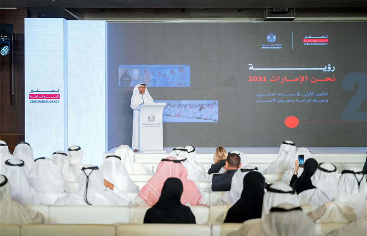 عقدت وزارة العدل ملتقى "تصفير البيروقراطية"، الذي استعرضت خلاله أبرز إنجازاتها في هذا المسار، وذلك بحضور معالي عبد الله سلطان بن عواد النعيمي وزير العدل، ومعالي محمد حمد البادي رئيس المحكمة الاتحادية العليا، ومعالي بيريك أصيلوف المدعي العام بجمهورية كازاخستان والوفد المرافق له، وسعادة ماريا بيلولفاس سفيرة جمهورية إستونيا لدى الدولة، وسعادة المهندس محمد بن طليعة رئيس الخدمات الحكومية في حكومة دولة الإمارات، إلى جانب ممثلين عن الجهات الحكومية الاتحادية والمحلية وعدد من شركاء ومتعاملي الوزارة.